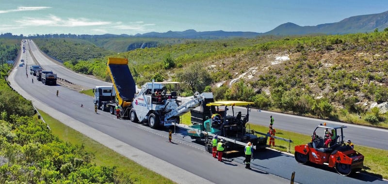 Caption: Rubber bitumen in a typical asphalt overlay application on the N2 near Gamtoos River.
